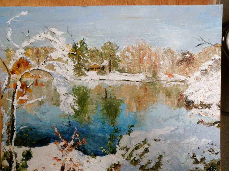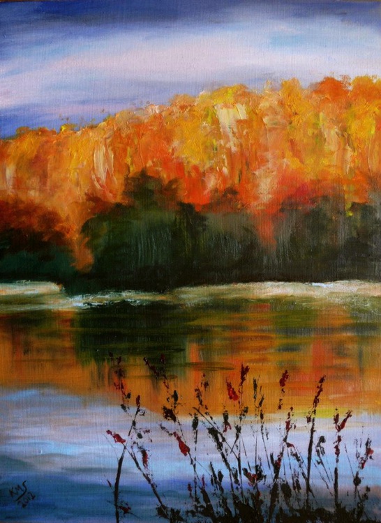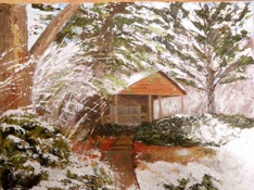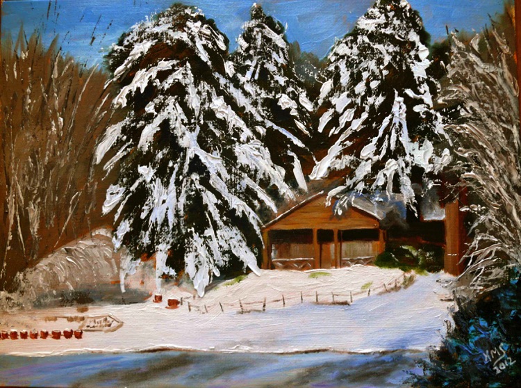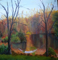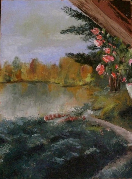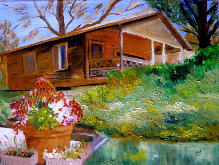 Karen spends much of her time painting, a new activity since her retirement, and gets much of her inspiration from the local area. You'll find many of her canvas paintings on the cabin walls and on rocks spread around the grounds.